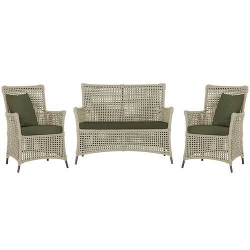 Jogo Sofá e 2 Poltronas de Área Igapó Alumínio Pintura Marrom Corda Náutica Estofado 13 Trama - Bege