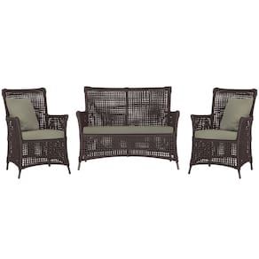 Jogo Sofá e 2 Poltronas de Área Igapó Alumínio Pintura Marrom Corda Náutica Estofado 8 Trama - Marrom Escuro