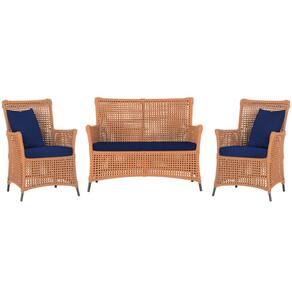 Jogo Sofá e 2 Poltronas de Área Igapó Alumínio Pintura Preta Corda Náutica Estofado 10 Trama - Laranja