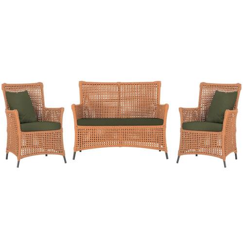 Jogo Sofá e 2 Poltronas de Área Igapó Alumínio Pintura Preta Corda Náutica Estofado 13 Trama - Laranja