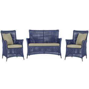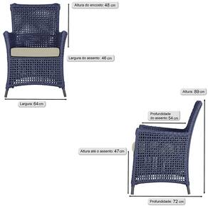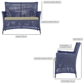 Jogo Sofá e 2 Poltronas de Área Igapó Alumínio Pintura Preta Corda Náutica Estofado 7 Trama - Azul