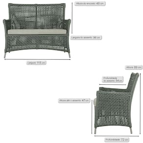 Feita em alumínio com uma sofisticada micro pintura, esta Sofá e Poltronas é a combinação perfeita de estilo e resistência. A corda náutica adiciona um toque de rusticidade moderna, enquanto o estofado impermeável garante que sua Sofá e Poltronas esteja sempre impecável, mesmo após uma chuva inesperada ou um acidente com líquidos. Adicione um toque de sofisticação e conforto ao seu espaço com a Sofá e Poltronas Igapó.