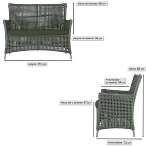 Jogo Sofá e 2 Poltronas de Área Igapó Alumínio - Verde