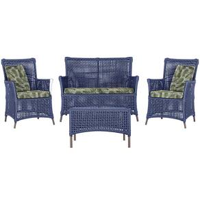 Jogo Sofá e 2 Poltronas e Mesa Igapó Alumínio - Azul