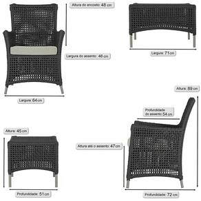 Jogo Sofá e 2 Poltronas e Mesa Igapó Alumínio - Preto
