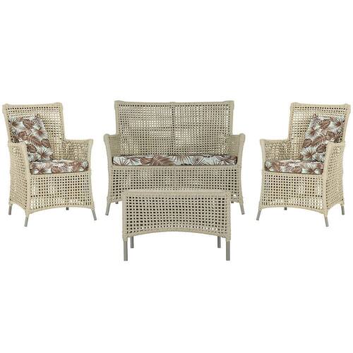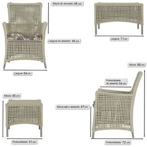 Jogo Sofá e 2 Poltronas e Mesa Igapó Alumínio - Bege Médio