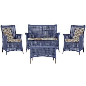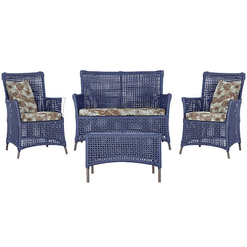 Jogo Sofá e 2 Poltronas e Mesa Igapó Alumínio - Azul