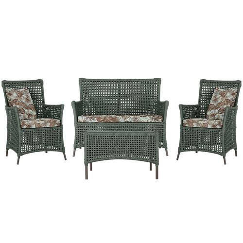 Jogo Sofá e 2 Poltronas e Mesa Igapó Alumínio - Verde Musgo