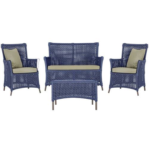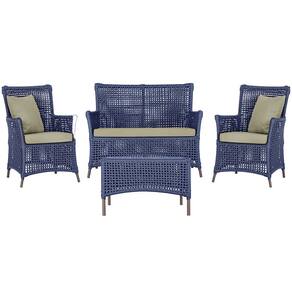 Jogo Sofá e 2 Poltronas e Mesa Igapó Alumínio - Azul