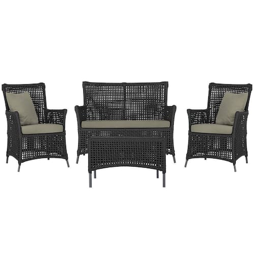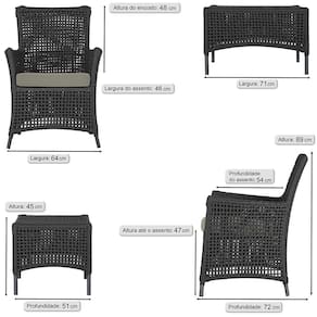 Jogo Sofá e 2 Poltronas e Mesa Igapó Alumínio - Preto