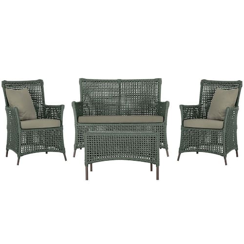 Jogo Sofá e 2 Poltronas e Mesa Igapó Alumínio - Verde Musgo