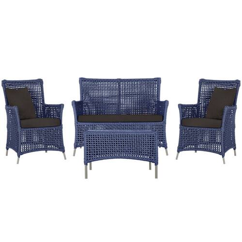 Jogo Sofá e 2 Poltronas e Mesa Igapó Alumínio - Azul