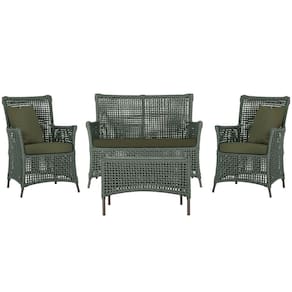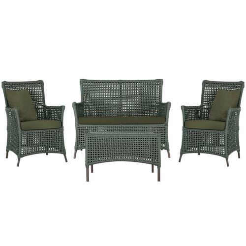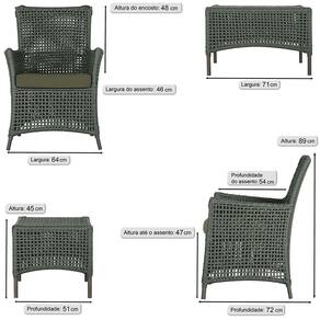 Jogo Sofá e 2 Poltronas e Mesa Igapó Alumínio - Verde Musgo