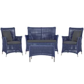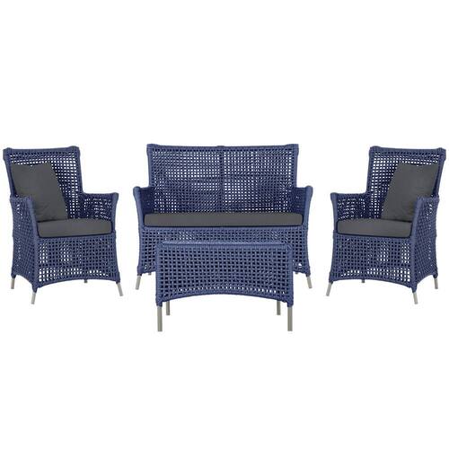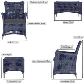 Jogo Sofá e 2 Poltronas e Mesa Igapó Alumínio - Azul