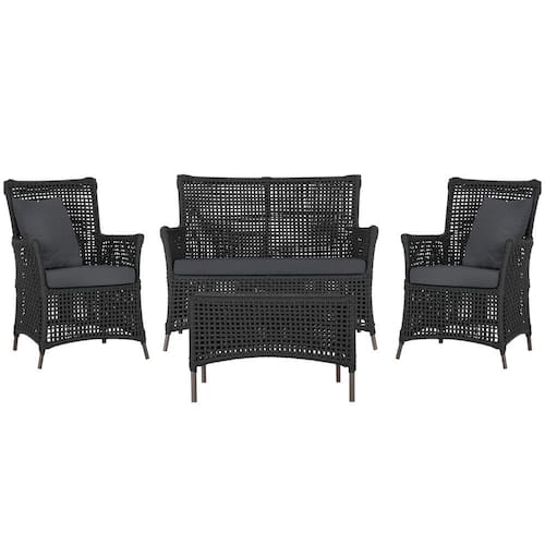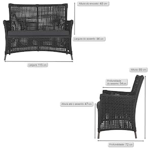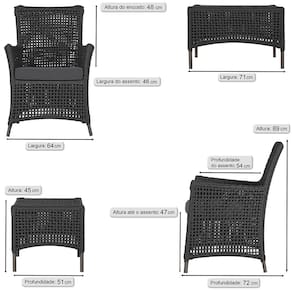 Jogo Sofá e 2 Poltronas e Mesa Igapó Alumínio - Preto