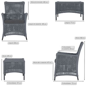 Jogo Sofá e 2 Poltronas e Mesa Igapó Alumínio - Prata