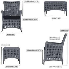 Jogo Sofá e 2 Poltronas e Mesa Igapó Alumínio - Prata
