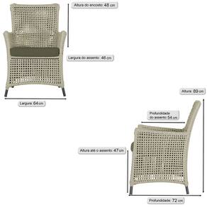 Jogo Sofá e 2 Poltronas e Mesa Igapó Alumínio - Bege Médio