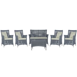 Jogo Sofá e 4 Poltronas e Mesa Igapó Alumínio - Prata
