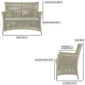 Jogo Sofá e 4 Poltronas e Mesa Igapó Alumínio - Bege Médio