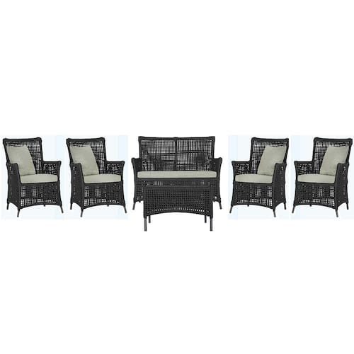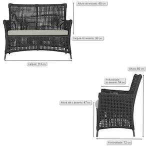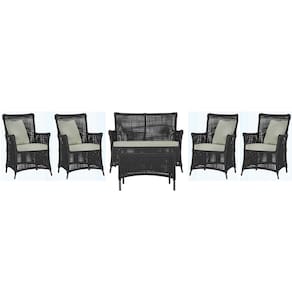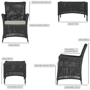 Jogo Sofá e 4 Poltronas e Mesa Igapó Alumínio - Preto