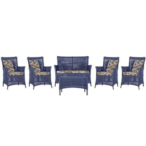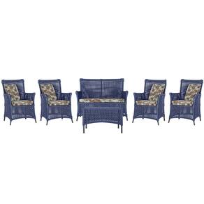 Jogo Sofá e 4 Poltronas e Mesa Igapó Alumínio - Azul Marinho