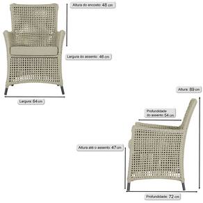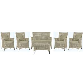 Jogo Sofá e 4 Poltronas e Mesa Igapó Alumínio - Bege Claro