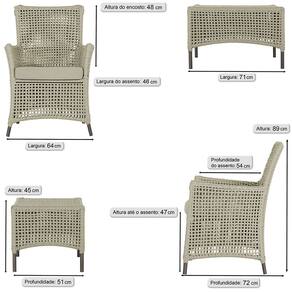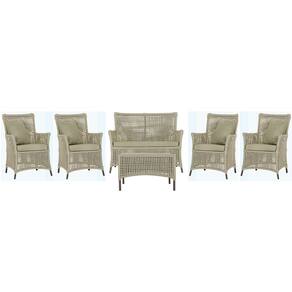 Jogo Sofá e 4 Poltronas e Mesa Igapó Alumínio - Bege