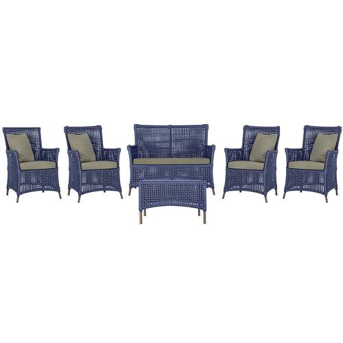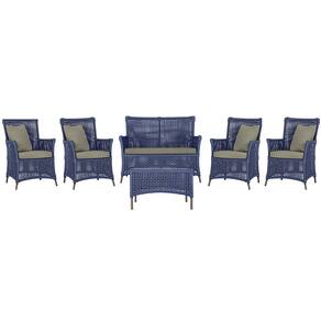 Jogo Sofá e 4 Poltronas e Mesa Igapó Alumínio - Azul