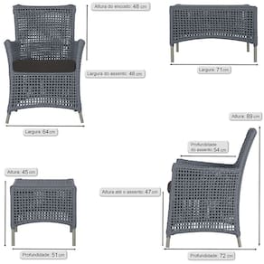 Jogo Sofá e 4 Poltronas e Mesa Igapó Alumínio - Prata