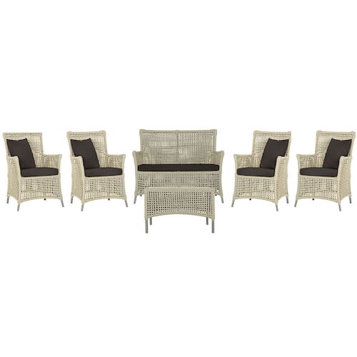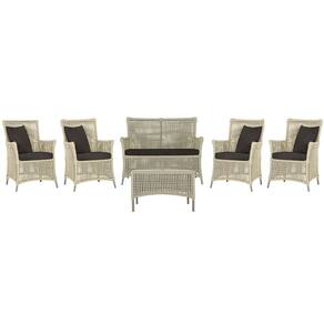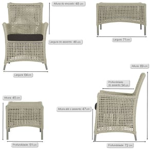 Jogo Sofá e 4 Poltronas e Mesa Igapó Alumínio - Bege Médio