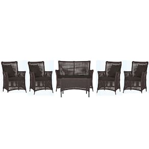 Jogo Sofá e 4 Poltronas e Mesa Igapó Alumínio - Marrom Chocolate