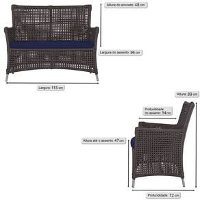 Jogo Sofá e 4 Poltronas e Mesa Igapó Alumínio - Marrom Chocolate