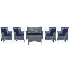 Jogo Sofá e 4 Poltronas e Mesa Igapó Alumínio - Prata