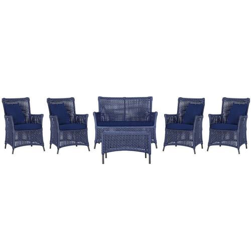 Jogo Sofá e 4 Poltronas e Mesa Igapó Alumínio - Azul