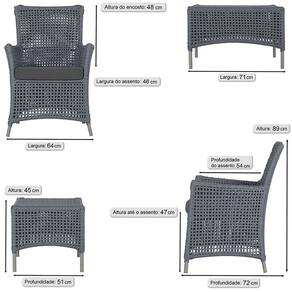 Jogo Sofá e 4 Poltronas e Mesa Igapó Alumínio - Prata