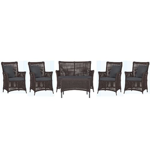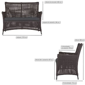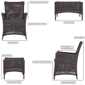 Jogo Sofá e 4 Poltronas e Mesa Igapó Alumínio - Marrom Chocolate