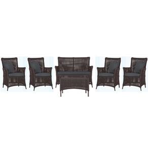 Jogo Sofá e 4 Poltronas e Mesa Igapó Alumínio - Marrom Chocolate