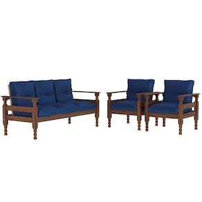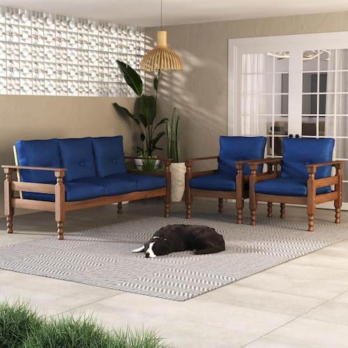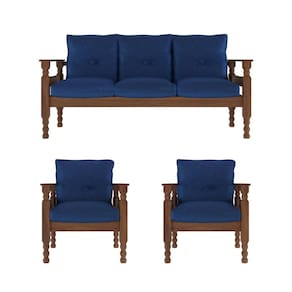 O Jogo Sofá Madeira Maciça 3 lugares e 2 Poltronas Liz Multimóveis é produzido em madeira maciça de pinus proveniente de reflorestamento e possui almofadas soltas preenchidas com flocos de espuma e revestidas em poliéster, que garante maior conforto e durabilidade. Uma ótima opção para deixar sua sala de estar acolhedora para curtir os melhores momentos com a família ou amigos.O sofá suporta até 260kg e cada poltrona suporta até 100kg.