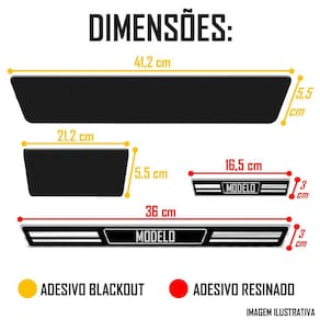 ATENÇÃO! A LARGURA da soleira Blackout (Vinil Preto) VARIA de acordo com o veículo para garantir a proteção da pintura.