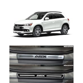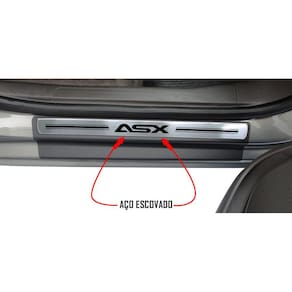 Jogo Soleira Premium Elegance Mitsubishi Asx 2011 2012 2013 2014 2015 2016 2017 2018 - 4 Portas ( Vinil + Resinada 8 Peças ) - Cor: Vinil + Aço Escovado