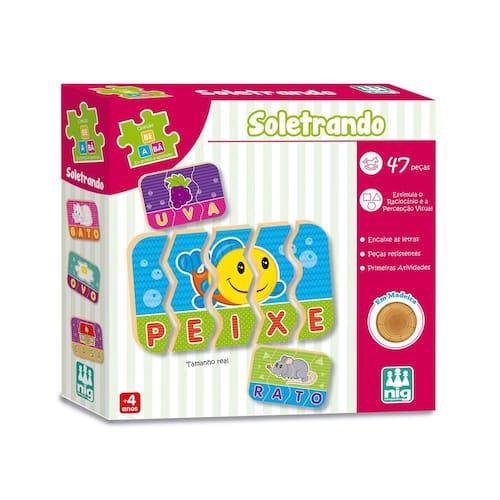 O jogo Soletrando, da Nig, foi pensado especialmente para estimular o aprendizado da escrita, a formação de palavras e as primeiras atividades durante o desenvolvimento infantil. Ideal para auxiliar no aprendizado dos pequenos na fase pré-escolar, conta com 47 peças em madeira altamente resistente para garantir mais durabilidade e apresenta cores alegres para tornar o aprendizado ainda mais divertido. A criança deve encaixar as letras para formar a palavra desejada, exibindo o desenho referente, como um quebra-cabeças. Além de muito descontraído, proporcionará deliciosos momentos de aprendizagem durante essa fase tão importante na vida de quem é especial para você.