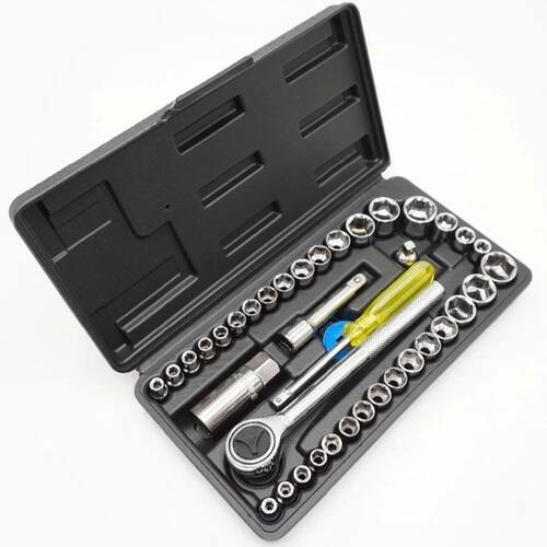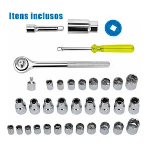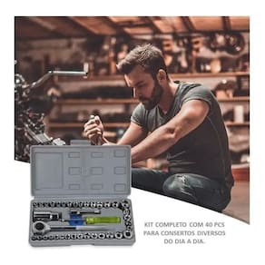 Jogo de Soquete Kit 40 Peças Chave Catraca Reversível Ferramenta + Maleta Sextavado Pito Vela Adaptador Jogo O Jogo de chaves mais soquetes sextavados em aço carbono LUATEK é indicado para trabalhos de aperto e desaperto de porcas e parafusos sextavados. Com 40 peças no total o jogo é composto de soquetes com medidas em Milímetros e Polegadas. Além dos soquetes, compõem o jogo: extensor de 3, chave catraca 3/8, chave direcional de 21mm, disco de reversão 6, 1 adaptador, 1 chave de manopla e estojo organizador. O que é o Disco Azul que acompanha o KIT Essa peça azul chama-se DISCO DE REVERSÃO. Ela tem a função de auxiliar o operador na mudança de posição apertar/afrouxar da catraca. Modo de utilizar: 1 - Coloque o disco no pino quadrado. 2 - Com uma das mãos segura o disco azul com o dedo indicador e polegar. 3 - Com a outra mão gire a peça preta que fica na parte traseira da catraca. -------------------- Especificações Técnicas: MATERIAL Aço carbono e PE -------------------- ITENS INCLUSOS 14 Soquetes 1/4' : 5/32 , 3/16 , 7/32 , 1/4 , 9/32 5/16 , 11/32 , 3/8 , 13/32 , 7/16 15/32 , 1/2 , 17/32 , 9/16 14 Soquetes 1/4' : 4 / 4.5 / 5 / 5.5 / 6 / 6.5 / 7 / 7.5 /8 / 9 / 10 / 11 / 12 / 13 mm 3 Soquetes 1/4' : 1/4 , 5/16 , 3/8 2 Soquetes 3/8' : 14 / 15mm 2 Soquetes 3/8' : 5/8 , 11/16 1 Extensor 3/8' : 3' 1 Adaptador : 1/4' - 3/8 1 Chave Catraca : 3/8' 1 Estojo organizador 1 Disco de reversão Marca: Não Informado