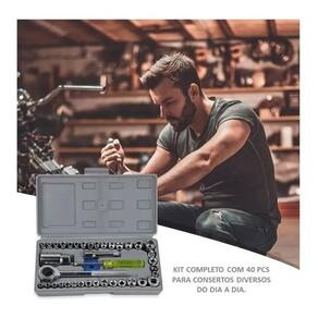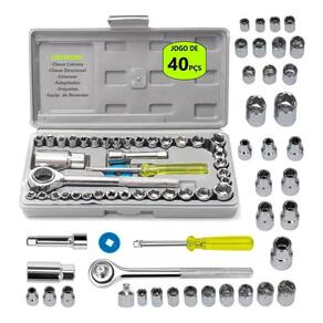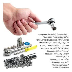 Com 40 peças no total o jogo é composto de soquetes com medidas em Milímetros e Polegadas.