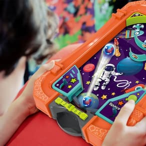 Consiste em plataforma de fácil montagem que imita um Pinball totalmente decorado com a temática espacial, juntamente com alavancas para manter a bola em jogo o máximo que puder e direcionando-a pelos obstáculos. O posicionamento dos obstáculos é totalmente personalizável!