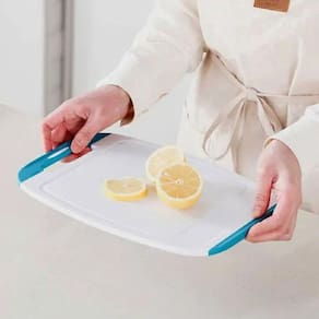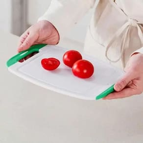 Ação antimicrobiana KLEON protege ao longo de toda a superficie de corte e punho; Alça com material suave; Dispositivo anti-deslizamento na bancada; Uso reversível em ambos os lados; Superfícies não porosas e não absorventes; Seguro para uso em lavadouras de louça; Não deixam as facas cegas; Coletor de suco nas bordas. O uso de tecnologias antimicrobianas torna os produtos mais ecológicos, protegendo-os contra os efeitos prejudiciais das bactérias, fungos e mofo. Produtos que ficam limpos e novos por mais tempo reduzem o impacto ambiental causado por lavagens muito frequentes, o uso excessivo da lavadora e do produto. A tecnologia KLEON está comprometida com a gestão ambiental e utiliza uma grande variedade de tecnologias antimicrobianas e formulações com características ecológicas, incluindo pouco ou nenhum produto VOC, nenhuma formulação contendo formaldeído, materiais plásticos ou borrachas recicladas e formulações compatíveis com padrões ambientais e regulatórios tais como o RoHS. Código: CB-BJ-3PCS Ean: 8806179670226