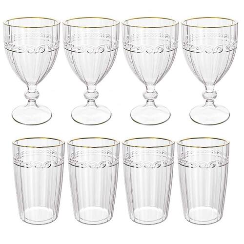 Jogo De Taças E Copos De Cristal Imperial Fio De Ouro 8 Peças - Lyor 5742/4 E 5740/4 Conjunto De 4 Taças e Copos Imperial Transparente Fio de Ouro - Lyor