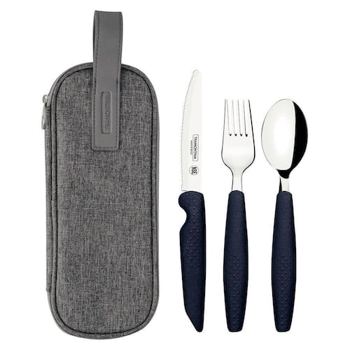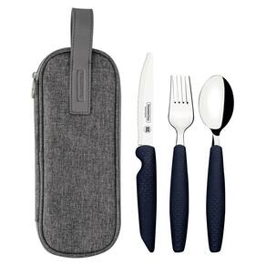 Jogo Talheres Assistivos Tramontina ForAll 4 Peças Lâminas Inox Cabos Cinza Estojo Tramontina