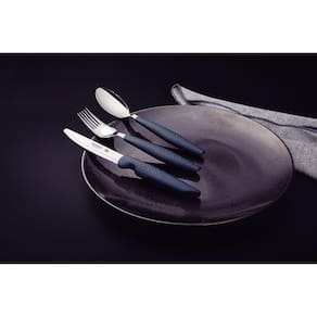 A linha ForAll conta com dois modelos diferenciados de talheres: talheres com cabo plástico e talheres com cabo de inox. Ambos são mais pesados do que talheres regulares e têm características especiais para melhorar a experiência durante a alimentação. - Talher com cabo plástico: modelo mais leve do que o talher com cabo de inox. Esse modelo é mais indicado para pessoas que possuem alguma fraqueza mais acentuada nas mãos. - Talher cabo de Inox: modelo mais pesado em comparação ao talher de cabo plástico. Proporciona maior estabilidade durante a alimentaçã com serrilha especial e ponta arredondada para garantir potencial de corte com seguranç mais largo e com bojo mais profundo para maior estabilidade do mais estreita e com bojo mais profundo para maior estabilidade do ergonômicos e mais robustos com textura especial para proporcionai mais firmeza e . Estojo prático para armazenar e transportar os talheres. Resistentes a lava-louças.