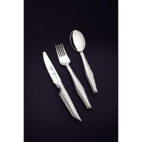 A linha ForAll conta com dois modelos diferenciados de talheres: talheres com cabo plástico e talheres com cabo de inox. Ambos são mais pesados do que talheres regulares e têm características especiais para melhorar a experiência durante a alimentação. - Talher com cabo plástico: modelo mais leve do que o talher com cabo de inox. Esse modelo é mais indicado para pessoas que possuem alguma fraqueza mais acentuada nas mãos. - Talher cabo de Inox: modelo mais pesado em comparação ao talher de cabo plástico. Proporciona maior estabilidade durante a alimentação.Talheres de aço inox.Faca com serrilha especial e ponta arredondada para garantir potencial de corte com segurança.Garfo mais largo e com bojo mais profundo para maior estabilidade do alimento.Colher mais estreita e com bojo mais profundo para maior estabilidade do alimento.Cabos ergonômicos e mais robustos com textura especial para proporcionai mais firmeza e segurança. Estojo prático para armazenar e transportar os talheres. Resistentes a lava-louças.